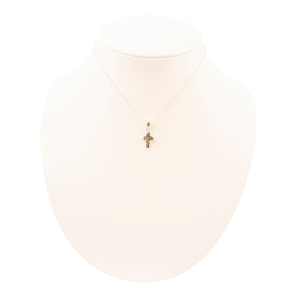Elegantly crafted from sterling silver, this pendant necklace features a hand-finished cross design with intricate engraved detailing. The pendant measures 0.97" in length with a maximum width of 0.42", suspended from a 15.25" sterling silver chain with a 2" extender and secure lobster clasp. Weighing 5.35g, each piece is individually crafted and finished by hand, making it a refined addition to any jewelry collection.