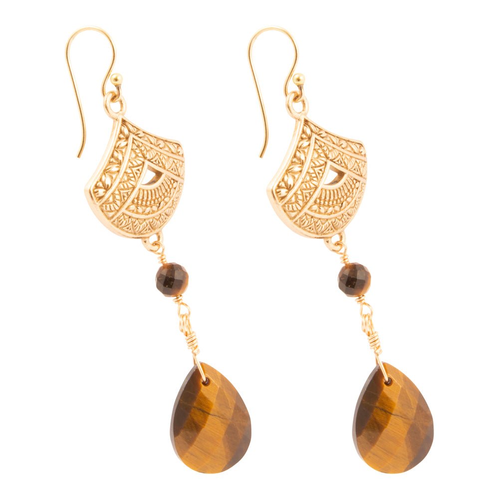 Maya Brown Tiger's Eye Golden Drop Earrings