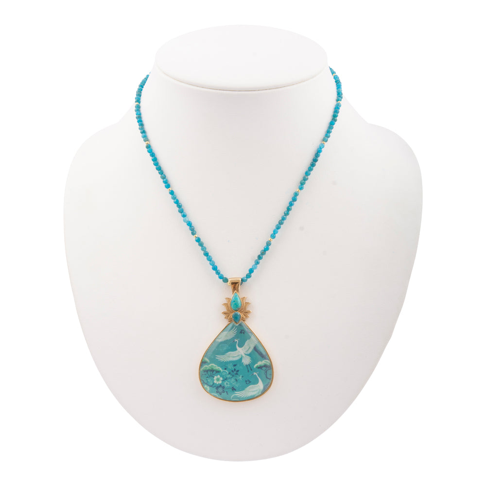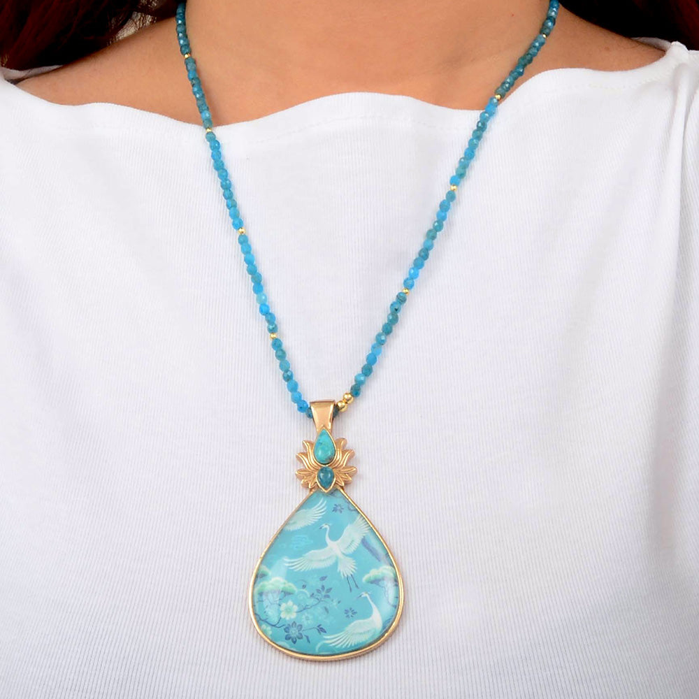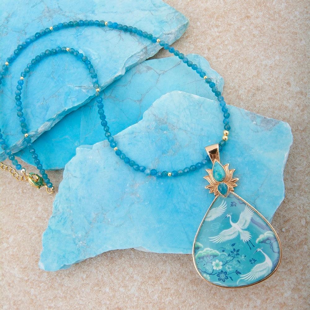 Heron Flight Teal Apatite Golden Pendant Necklace