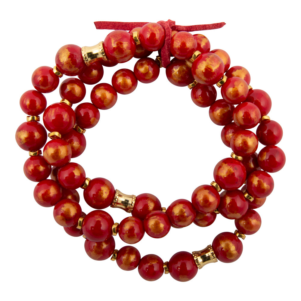 Discover timeless elegance with this curated trio of stretch bracelets, each showcasing genuine red jade paired with refined 18K gold-plated brass accents. Hand-finished to perfection, each bracelet stretches to a comfortable 7.25" with a graceful 0.41" width at its widest point, combining substantial presence with wearable comfort. Together, they weigh a total of 55.5 grams of genuine craftsmanship and natural beauty.